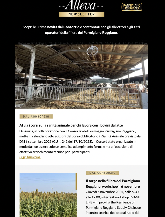 Attualità e informazioni del Consorzio per gli allevatori da Parmigiano Reggiano. Newsletter n. 5 – 2025 newsletter-nr-5Download Share Post Newsletter n. 4 – 2025 NL-nr-4_2025Download Share Post Newsletter n. 3 – 2025 landing_parmigianoreggiano_com_le_news_di_luglio_d13641588_utm_content_113641588_utm_source_hs_email_compressedDownload Share Post Newsletter n. 2 – 2025 Newsletter-nr-2_compressedDownload Share Post Newsletter n. 1 – 2025 Newsletter-12025Download Share Post Newsletter n. 7 – 2024 landing_parmigianoreggiano_com_le_news_di_dicembre01131865_utm_content_101131865_utm_source_hs_emailDownload Share Post Newsletter n. 6 – 2024 Newsletter-nr-6Download Share Post Newsletter n. 5 – 2024 Newsletter-n.5_2024Download Share Post Newsletter n. 4 – 2024 landing_parmigianoreggiano_com_errata_corrige_qr_c13311994_utm_content_313311994_utm_source_hs_emailDownload Share Post Newsletter n. 3 – 2024 newsletter-nr-3-2024_compressedDownload Share Post Newsletter n. 3 – 2024 newsletter-nr-3-2024_compressedDownload Share Post Newsletter n. 2 – 2024 NL-nr-2-Consorzio-PRDownload Share Post Newsletter n. 1 – 2024 NL-1-24Download Share Post Newsletter n. 7 – 2023 newsletter-Nr-7-2Download Share Post Newsletter n. 6 – 2023 newsletter-nr-6Download Share Post Newsletter n. 5 – 2023 Newsletter-nr-5Download Share Post Newsletter n. 4 – 2023 Newsletter-nr-4-Luglio-2023Download Share Post Newsletter n. 3 – 2023 Alleva-Newsletter-nr-3-Download Share Post Newsletter n. 2 – 2023 newsletter-nr-2-Download Share Post Newsletter n. 1 – 2023 newbusinessmedia_mn_ssl_com_nl_link_d_4aaf_h_2ttqj_3og_iw_d2_n_23tl_p_H301802549_s_wv_sl_ita_sn_23tlDownload Share Post Newsletter n. 10 – 2022 Newsletter-nr-10Download Share Post Newsletter n. 9 – 2022 newsletter-nr-9-25-novembre-Download Share Post Newsletter n. 8 – 2022 Alleva-Newletter-nr-8_compressedDownload Share Post Newsletter n. 7 – 2022 Alleva-Newsletter-nr-7Download Share Post Newsletter n. 6 – 2022 Alleva-Newsletter-nr-6Download Share Post Newsletter n. 5 – 2022 newbusinessmedia_mn_ssl_com_nl_link_d_42g7_h_3v161_3og_iw_d2_n_1vv1_p_H301800627_s_wv_sl_ita_sn_1vv1Download Share Post Newsletter n. 4 – 2022 alleva-newsletter-nr-4-31-maggio-Download Share Post Newsletter n. 3 – 2022 Alleva-newsletter-nr-3Download Share Post Newsletter n. 2 – 2022 Alleva-newsletter-nr-2Download Share Post Newsletter n. 1 – 2022 Newsletter-1Download Share Post Newsletter n. 11 – 2021 newbusinessmedia_mn_ssl_com_nl_link_c_7sj58_d_3pghpns36_i_3og_iw_d2_n_1rad_p_H301800627_s_wv_sn_1radDownload Share Post Newsletter n. 10 – 2021 Newsletter 10Download Share Post Newsletter n. 9 – 2021 Newsletter 9Download Share Post Newsletter n. 8 – 2021 Newsletter 8Download Share Post Newsletter n. 7 – 2021 Newsletter 7Download Share Post Newsletter n. 6 – 2021 Newsletter 6Download Share Post Newsletter n. 5 – 2021 Newsletter 5Download Share Post Newsletter n. 4 – 2021 Newsletter 4Download Share Post Newsletter n. 3 – 2021 Newsletter 3Download Share Post Newsletter n. 2 – 2021 Newsletter 2Download Share Post Newsletter n. 1 – 2021 newsletter_1Download Share Post